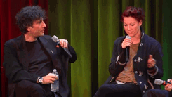 I don’t have anything useful to say this evening, so instead enjoy this gif of Neil Gaiman trying to drink from his microphone.