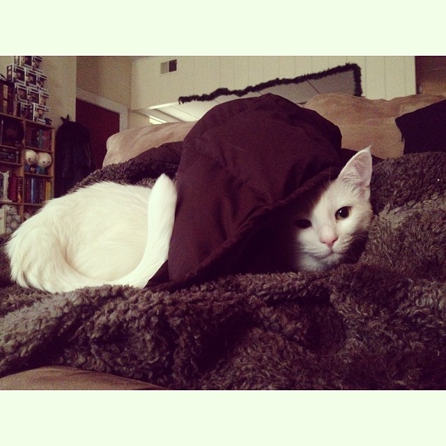 because she burrowed into this blanket and made herself a little bundle.