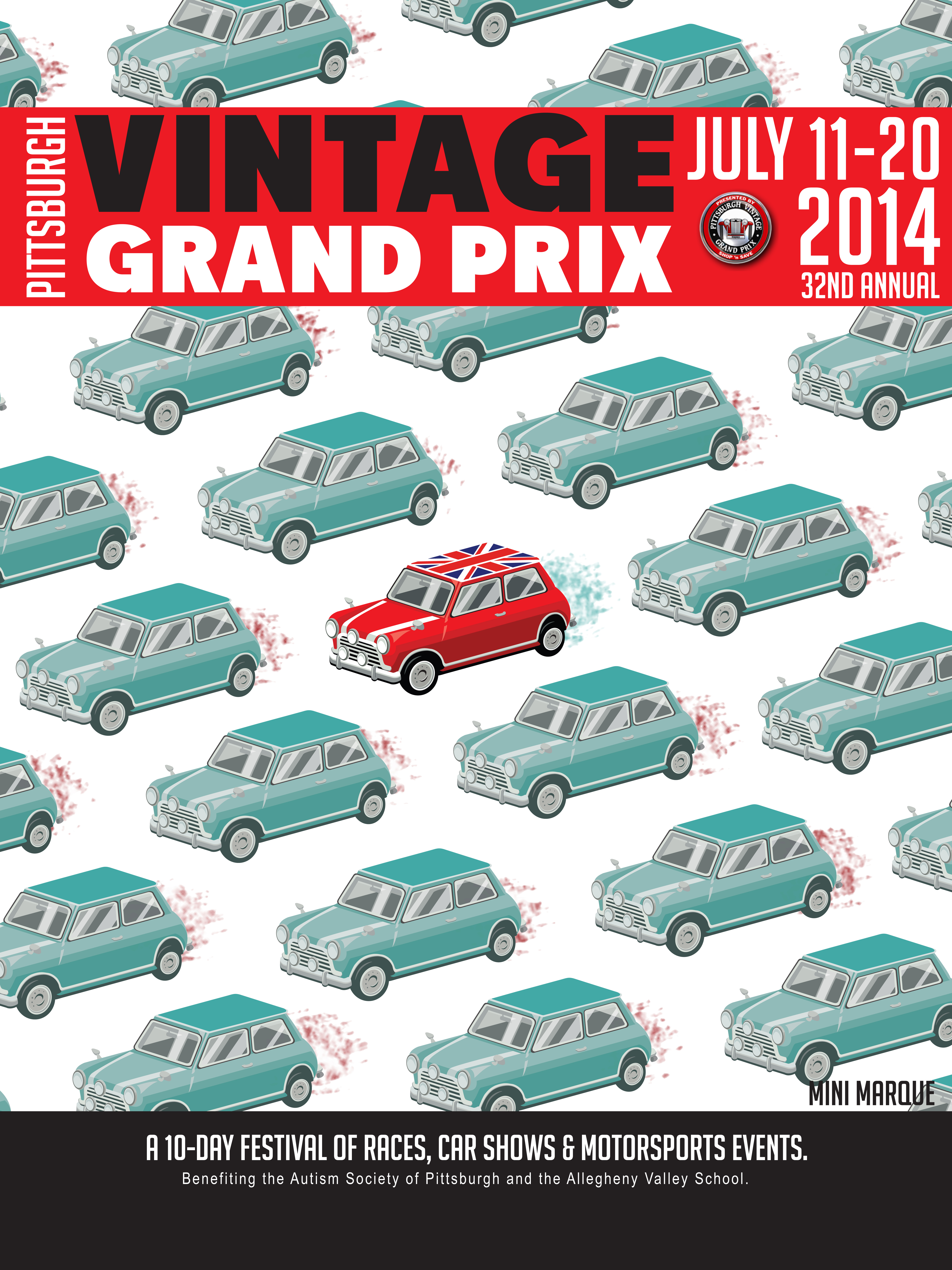 The piece that made it into the show is my Pittsburgh Vintage Grand Prix Mini-Cooper illustration. I’ve posted about that piece before. It’s funny – the piece itself didn’t win the competition it was created for, but it has earned me a freelance opportunity for a similar poster and now has earned me a spot in a show produced by the prestigious New York Society of Illustrators.